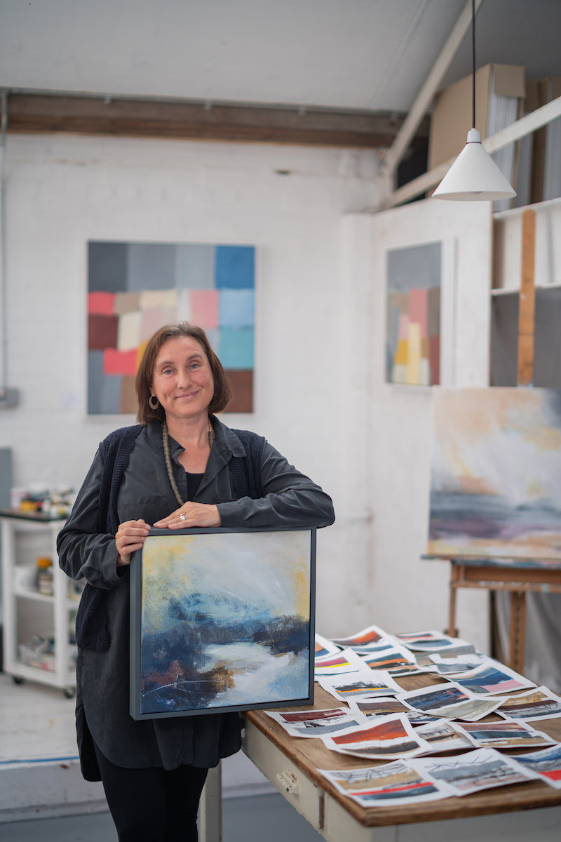 Some of my collections, such as the ‘At Home’ collection are created using oil paint with cold wax medium on wooden panels and applied with scrapers and knives. These original one off pieces are then framed in a St Ives wooden tray frame.