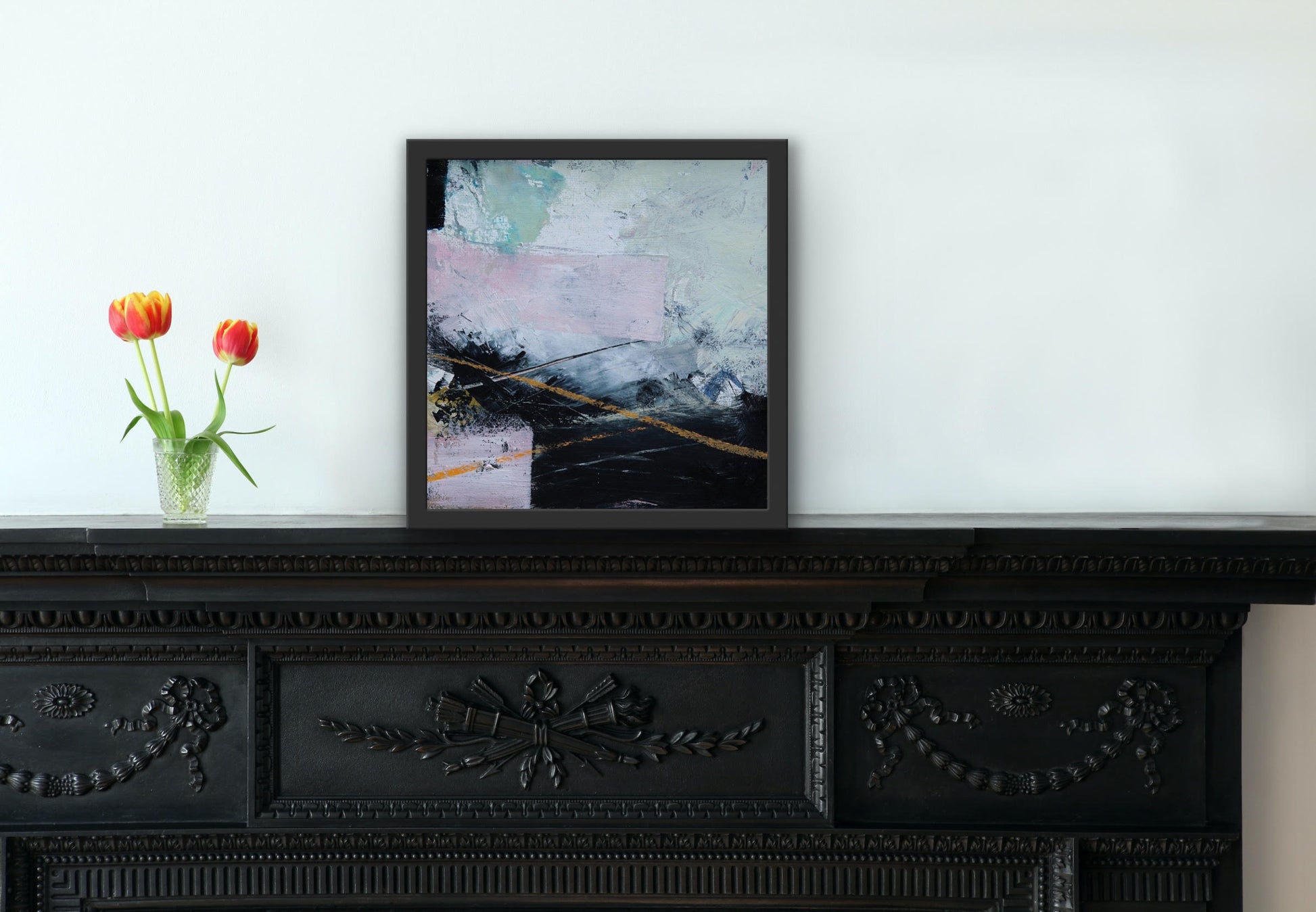 Framed in a classic white hardwood box frame, your original painting is delivered ready to hang.