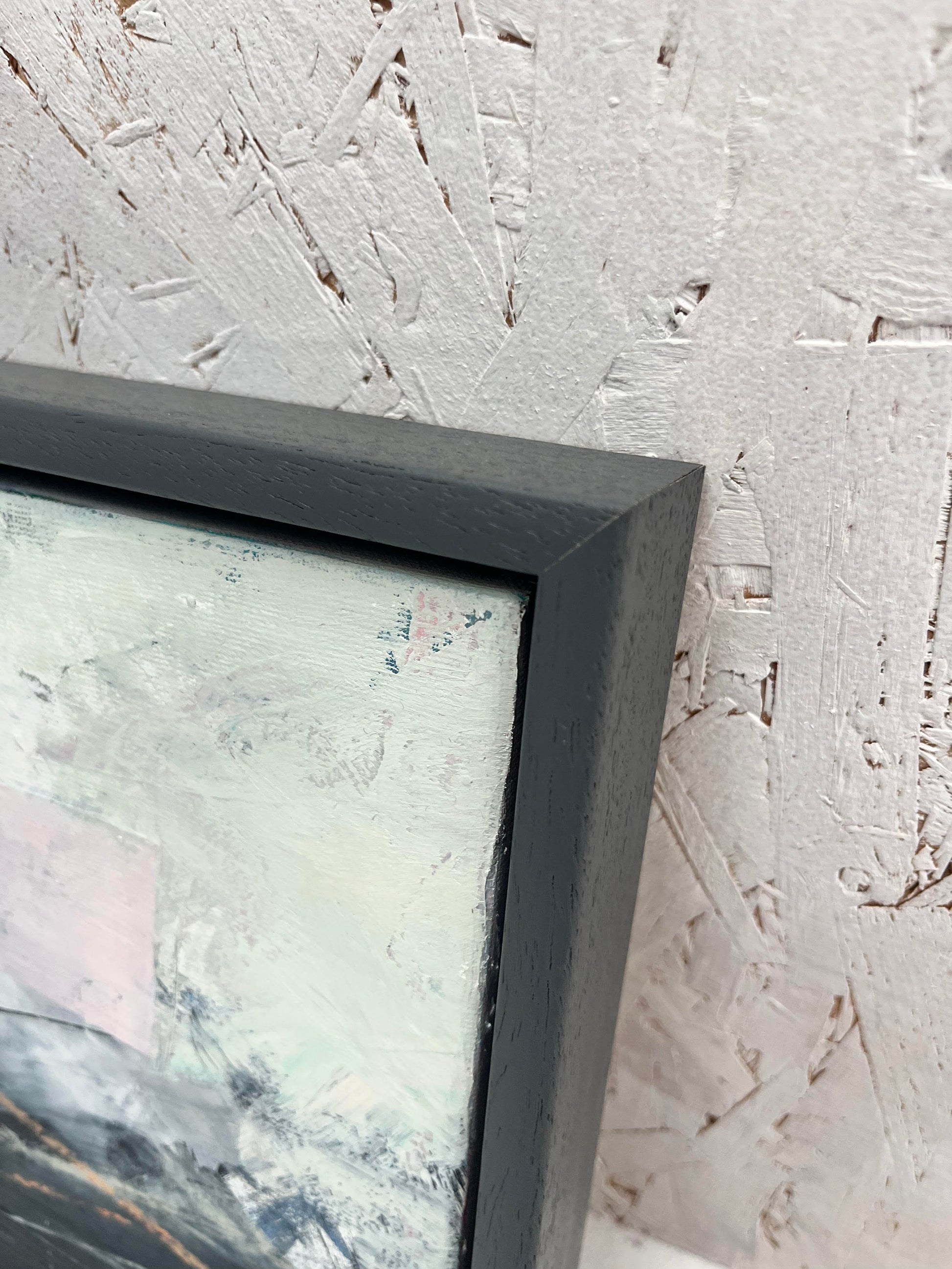 Framed in a grey wooden tray frame