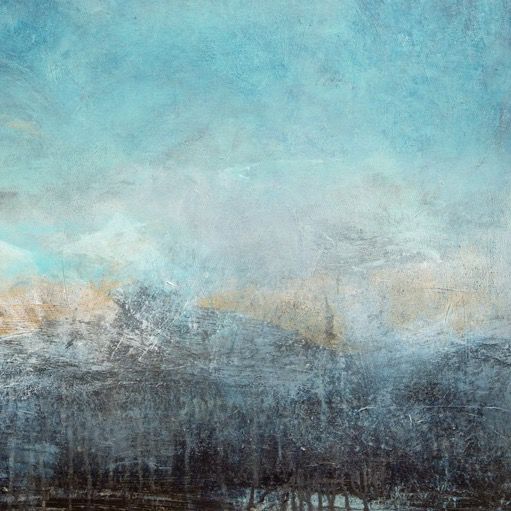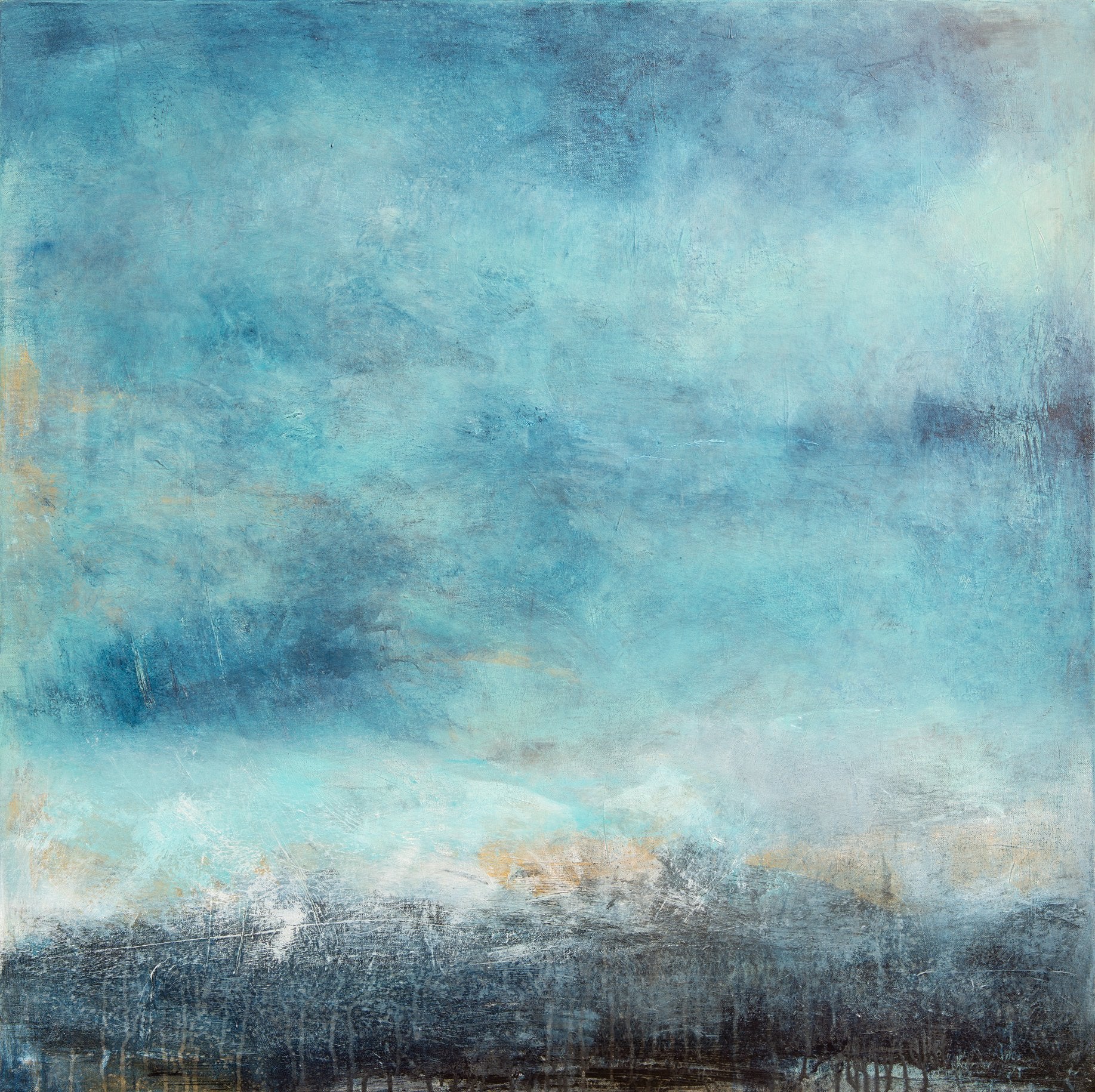 I create my paintings building the paint up in layers to build texture and atmosphere. I like to transfer the energy and feeling of my subject with big gestural marks using a variety of wide brushes and scrapers. A suggestion of land, nature or coastline is achieved through mark making with various tools and organic lines.
