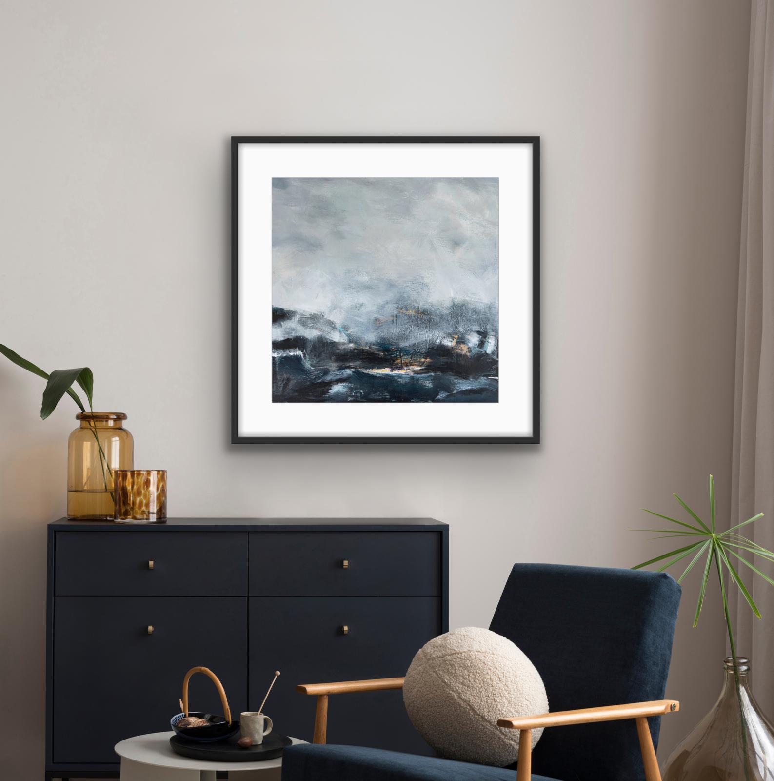 Inspired by the wilderness in deep winter this beautifully presented print brings drama and atmosphere to any room with its texture and gestural marks it celebrates the power of stormy wild days. A reminder of wild open spaces and the feeling of being out in the elements.