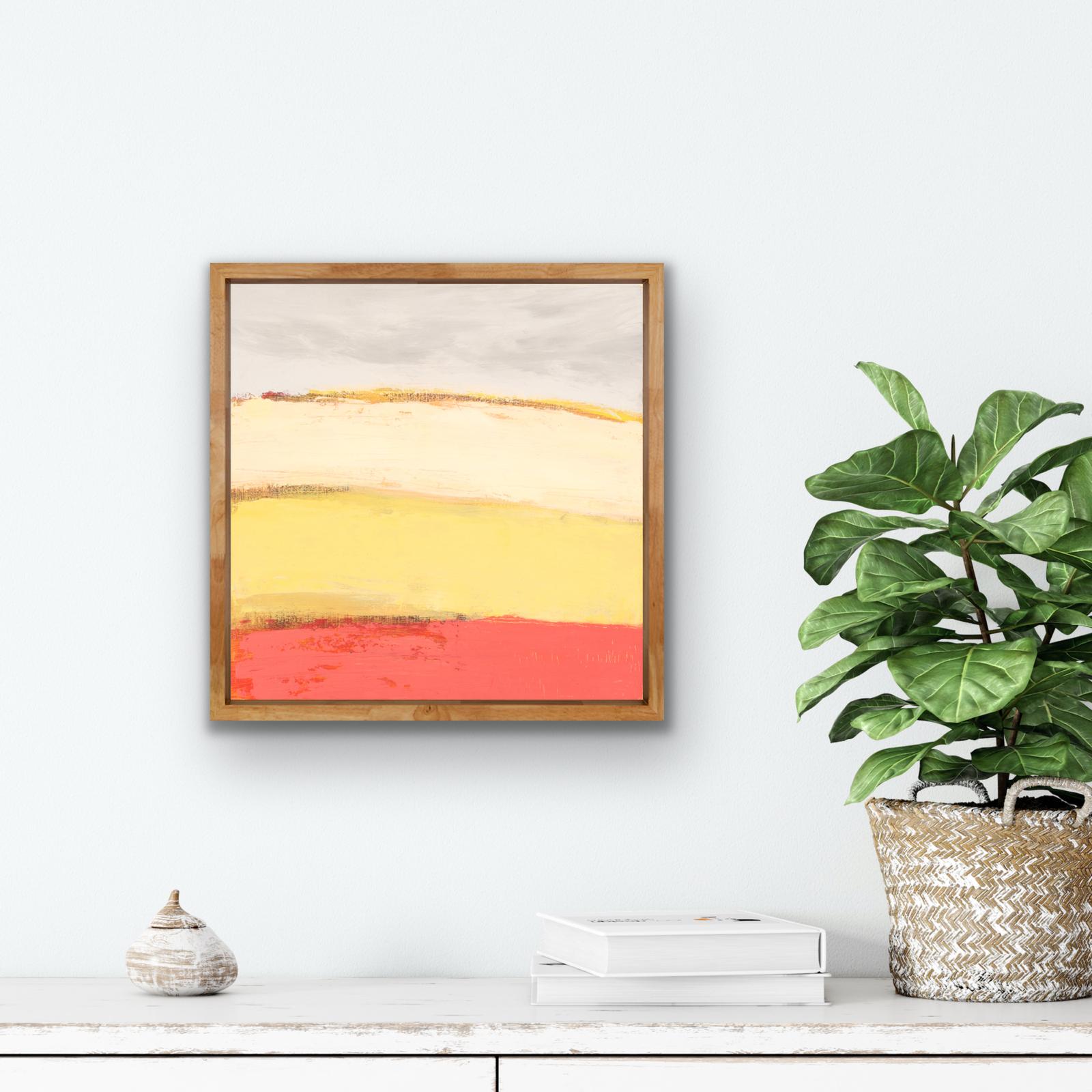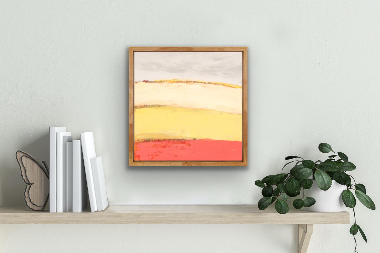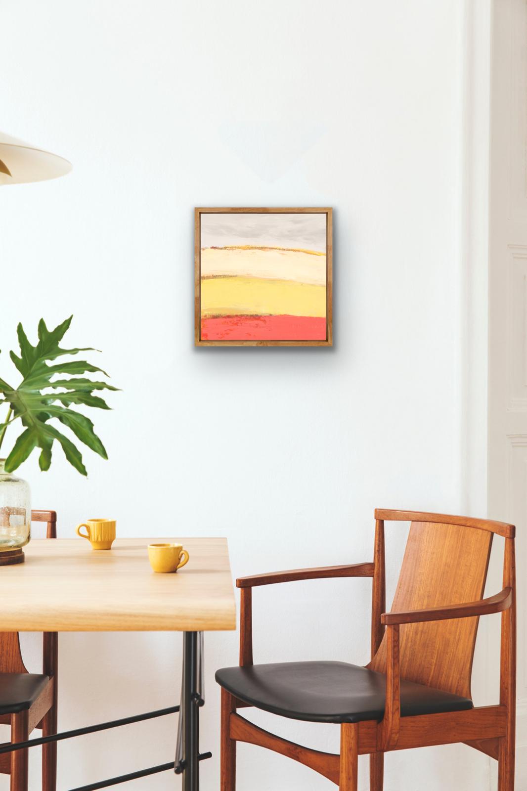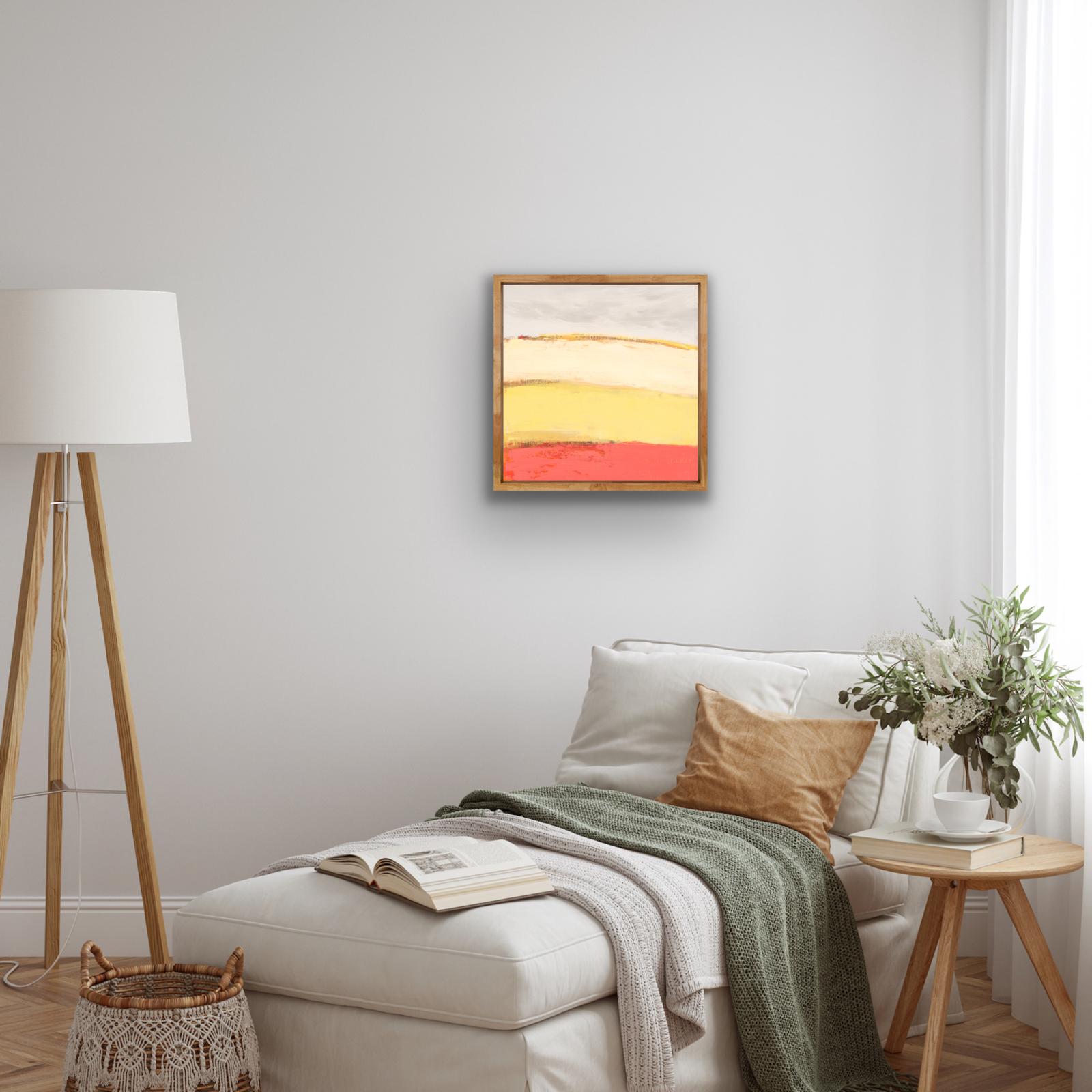 Slightly textured and using a range of vivid and tranquil colours in shades of yellow and some red they are a celebration of shape, colour and landscape.