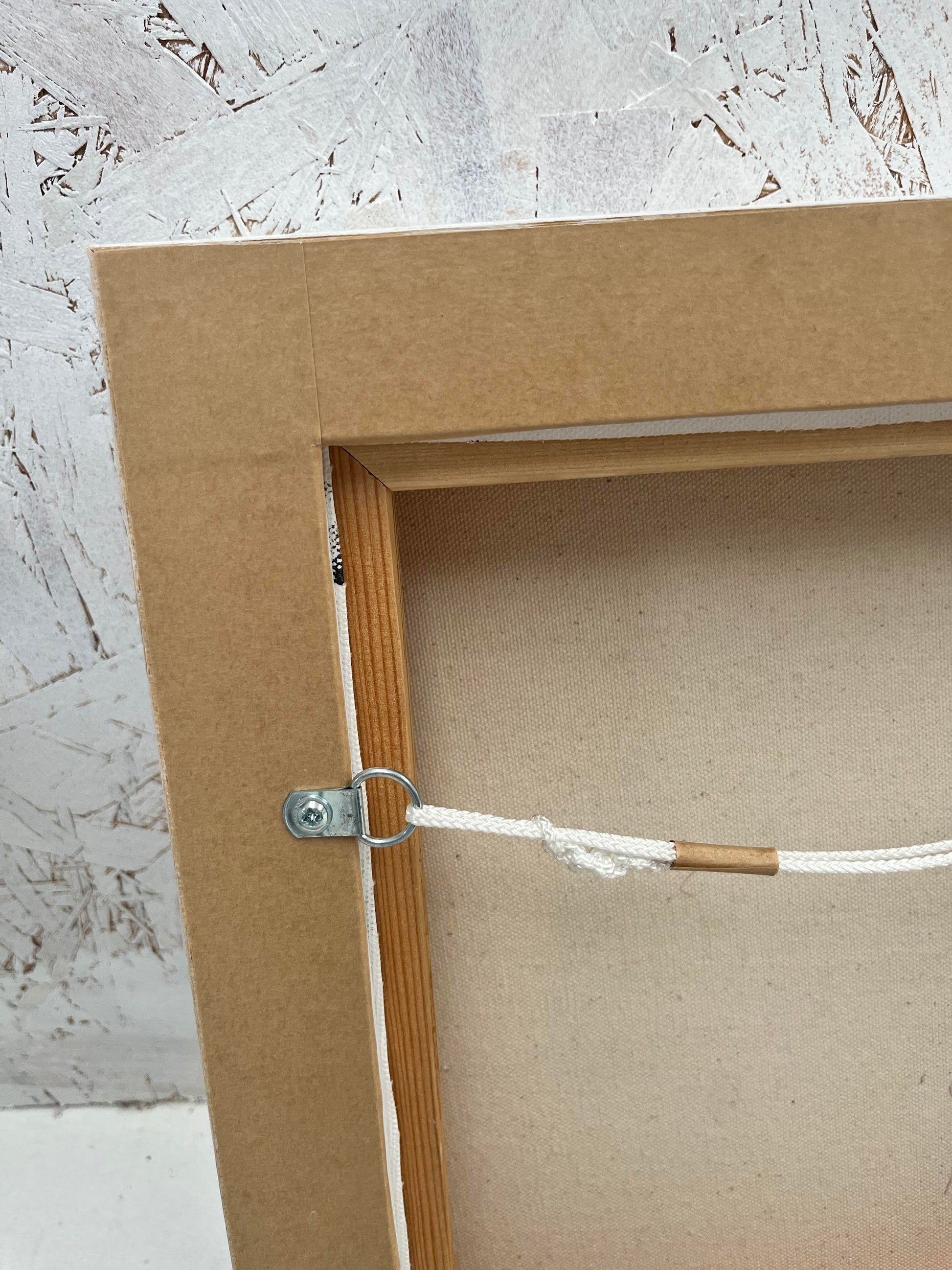 Framed in a classic white hardwood box frame, your original painting is delivered ready to hang.