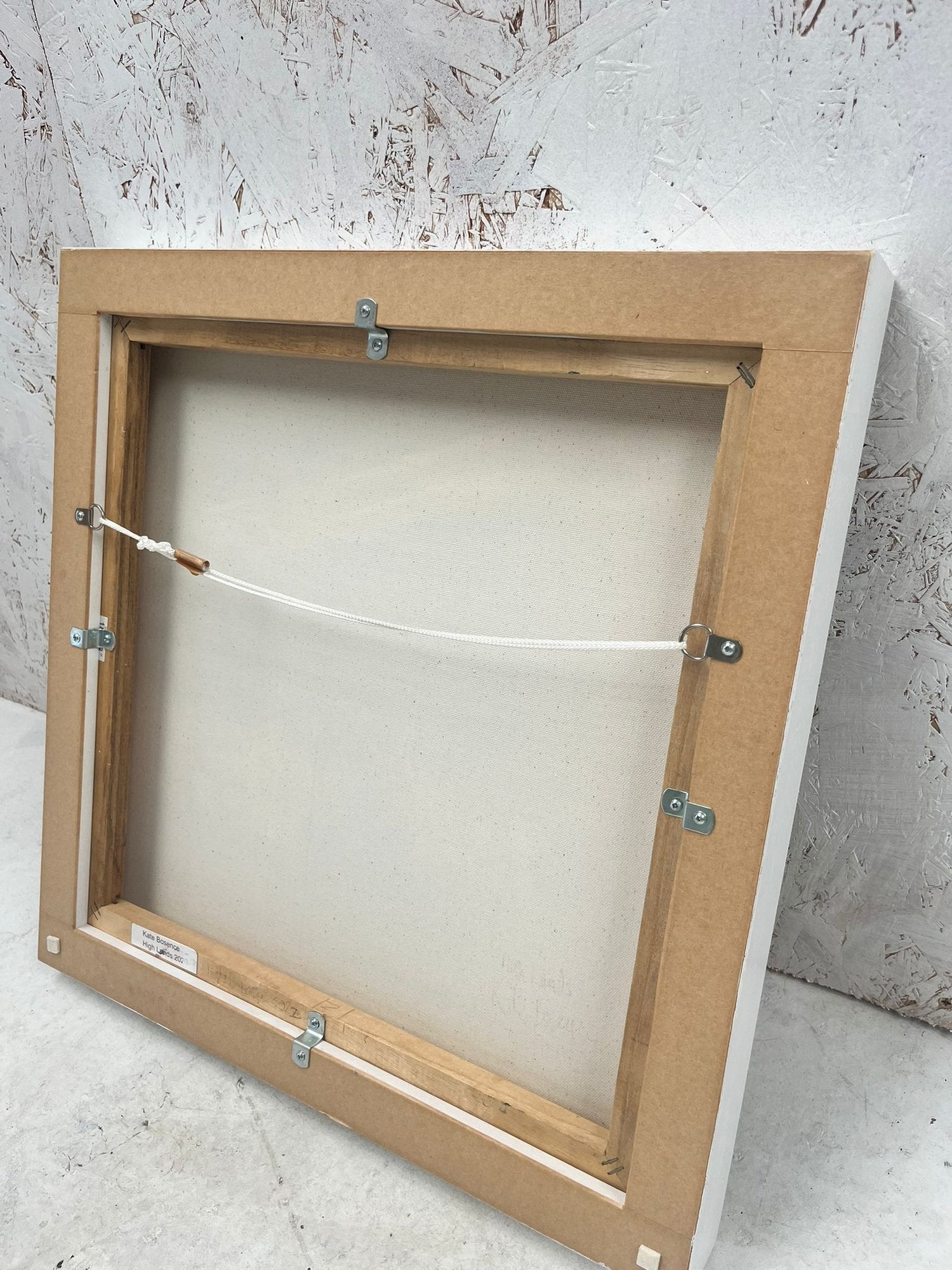 Framed in hardwood box white frame.