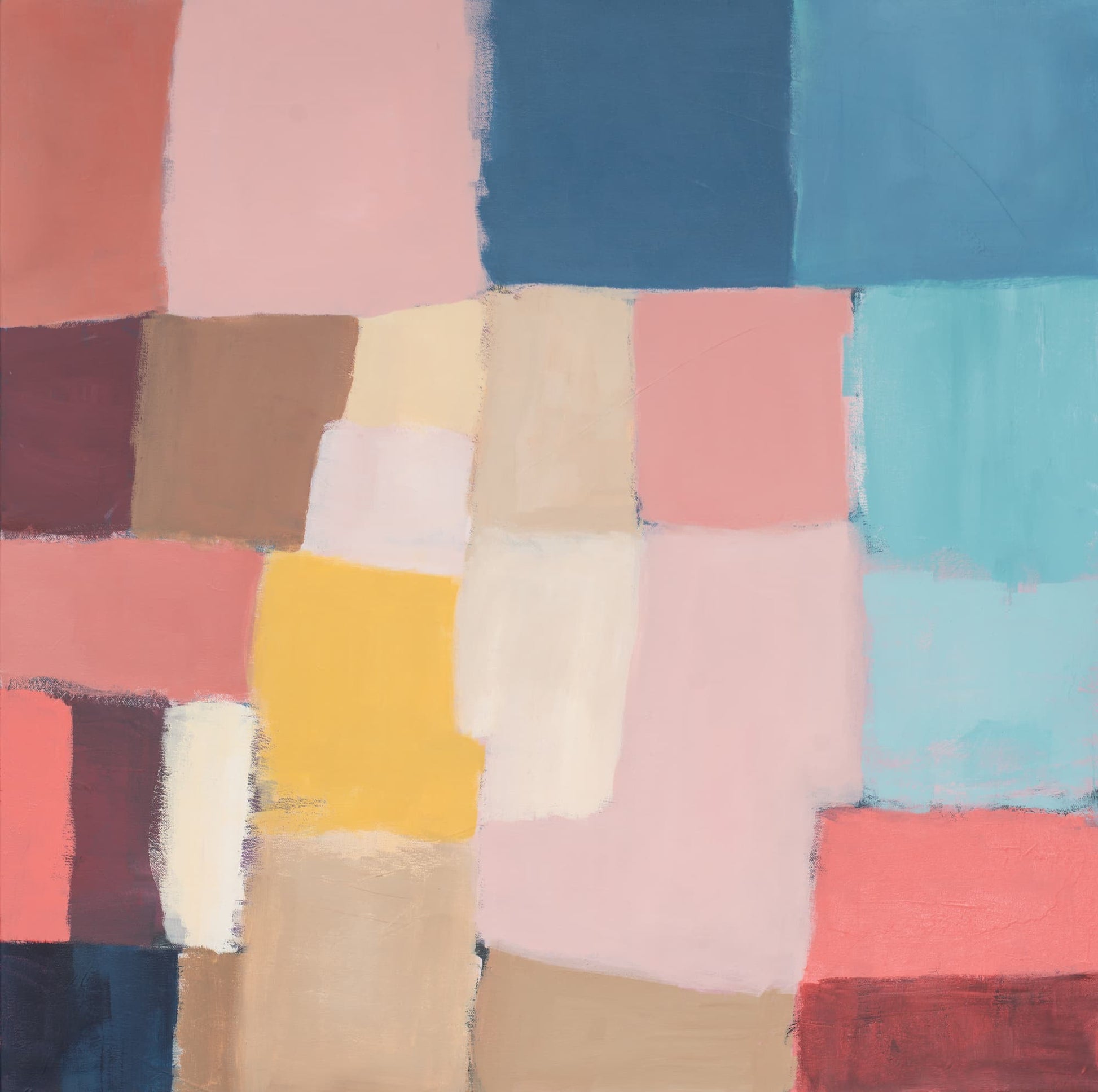 Abstract landscape painting with blocks of colour