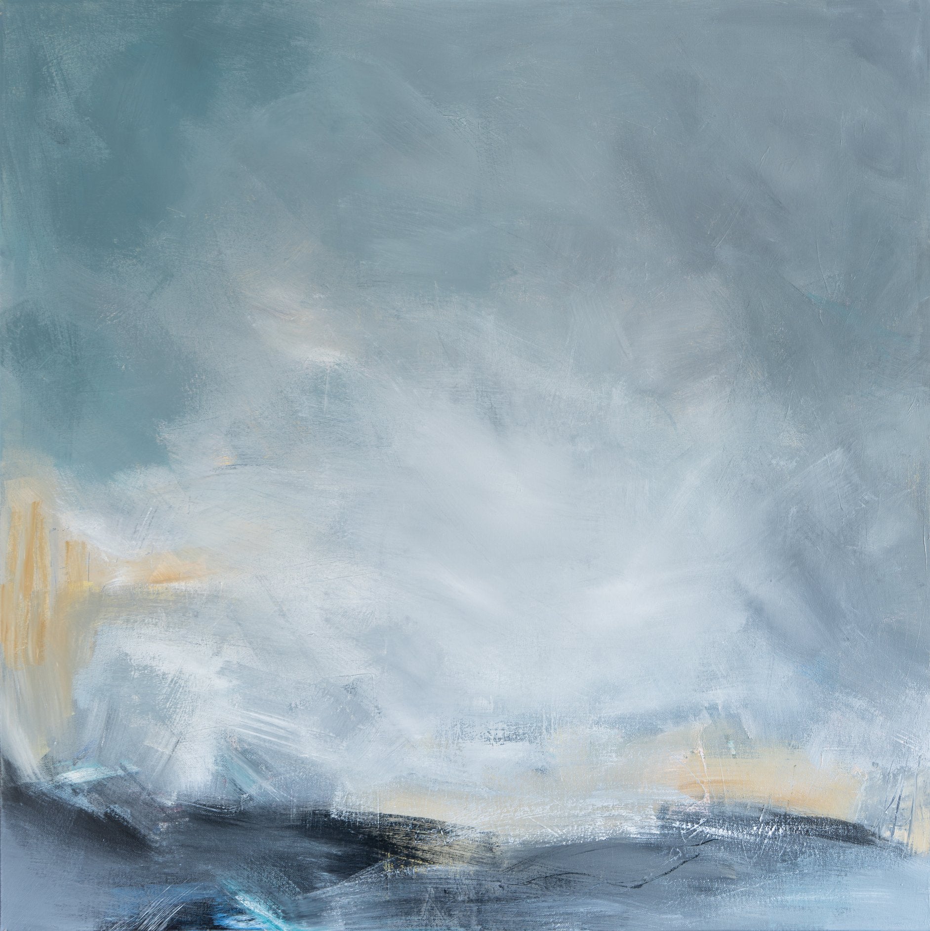I create my paintings building the paint up in layers to build texture and atmosphere. I like to transfer the energy and feeling of my subject with big gestural marks using a variety of wide brushes and scrapers. A suggestion of land, nature or coastline is achieved through mark making with various tools and organic lines.