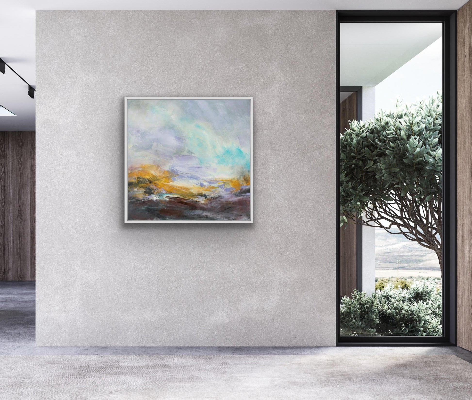 Untamed Lands is a bold and expressive celebration of wild moorland in summer. Gestural strokes of lilac, burnt sienna, and yellow capture the earthy tones of heather and gorse, while the abstract sky and land merge in a dynamic, fluid conversation.