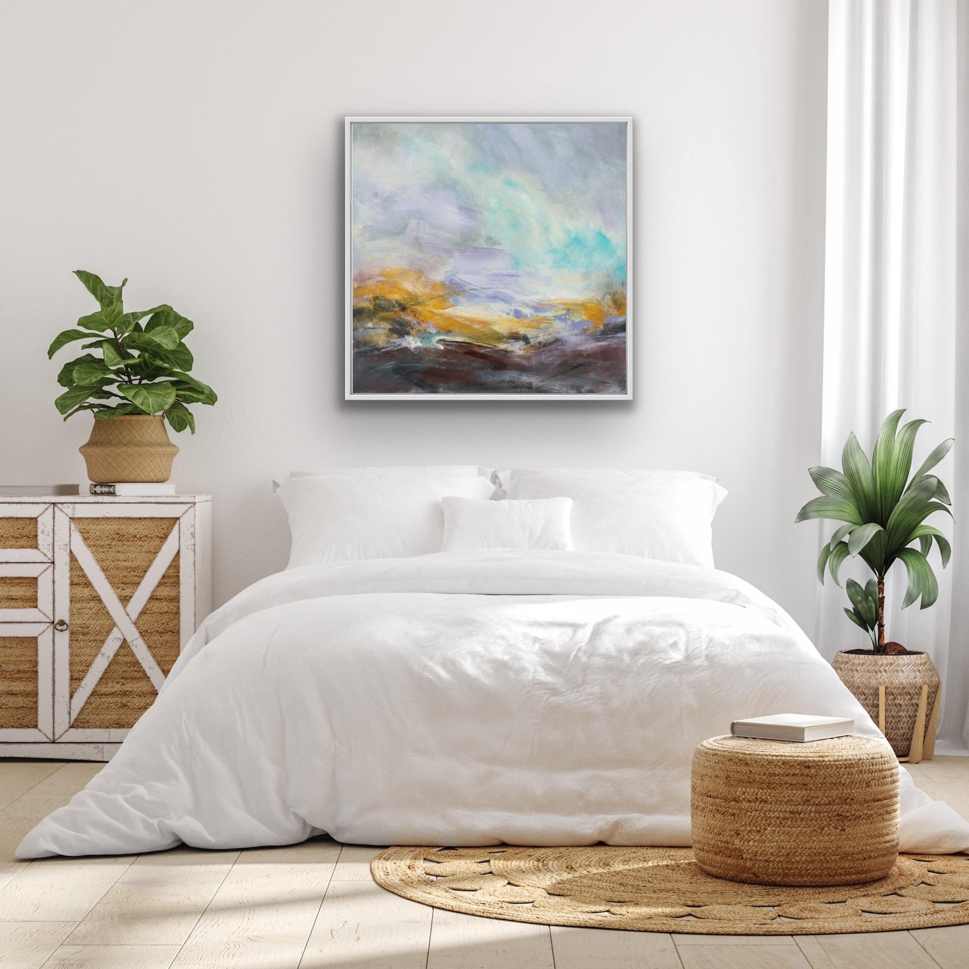 Following your initial enquiry we have an initial discussion to decide upon the design. You can share with me about where it will be hung and perhaps about your decor if that is relevant. You may have a picture of a special place that you want to be reflected in the piece. We will look at my past paintings as a reference for composition, style, colour palette and atmosphere to create a guide for me before I begin. I will create you your own original painting over the course of a few weeks. I will communicate with you partway through the process and also towards the end to ensure we are on track.