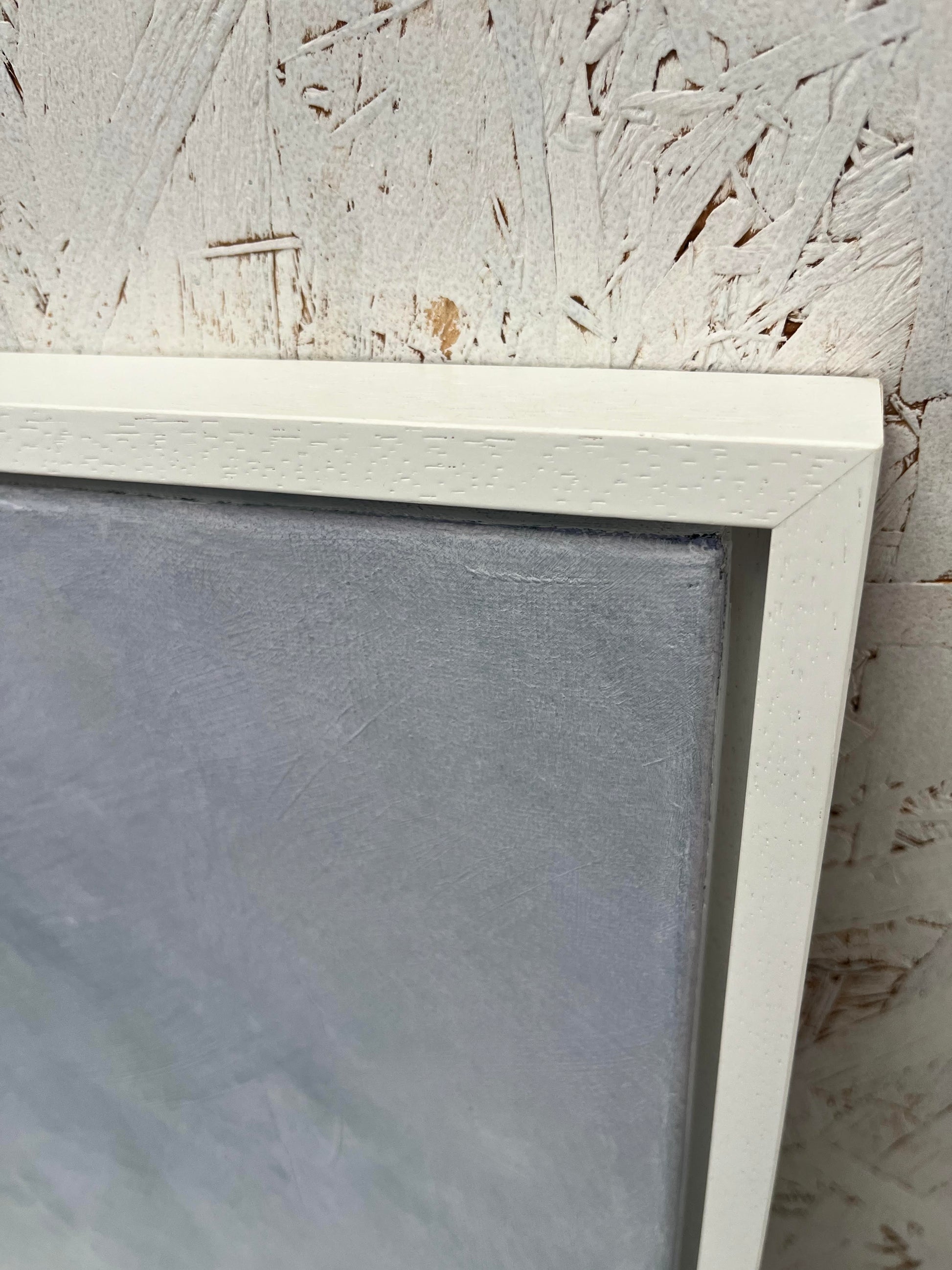 Framed in a classic white hardwood box frame, your original painting is delivered ready to hang.