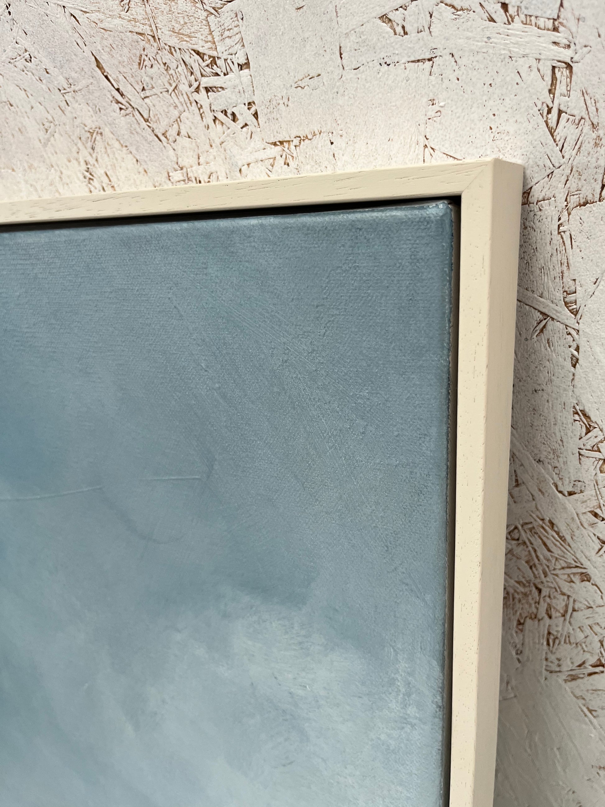 Acrylic on Canvas. Framed in a cream wooden tray frame.