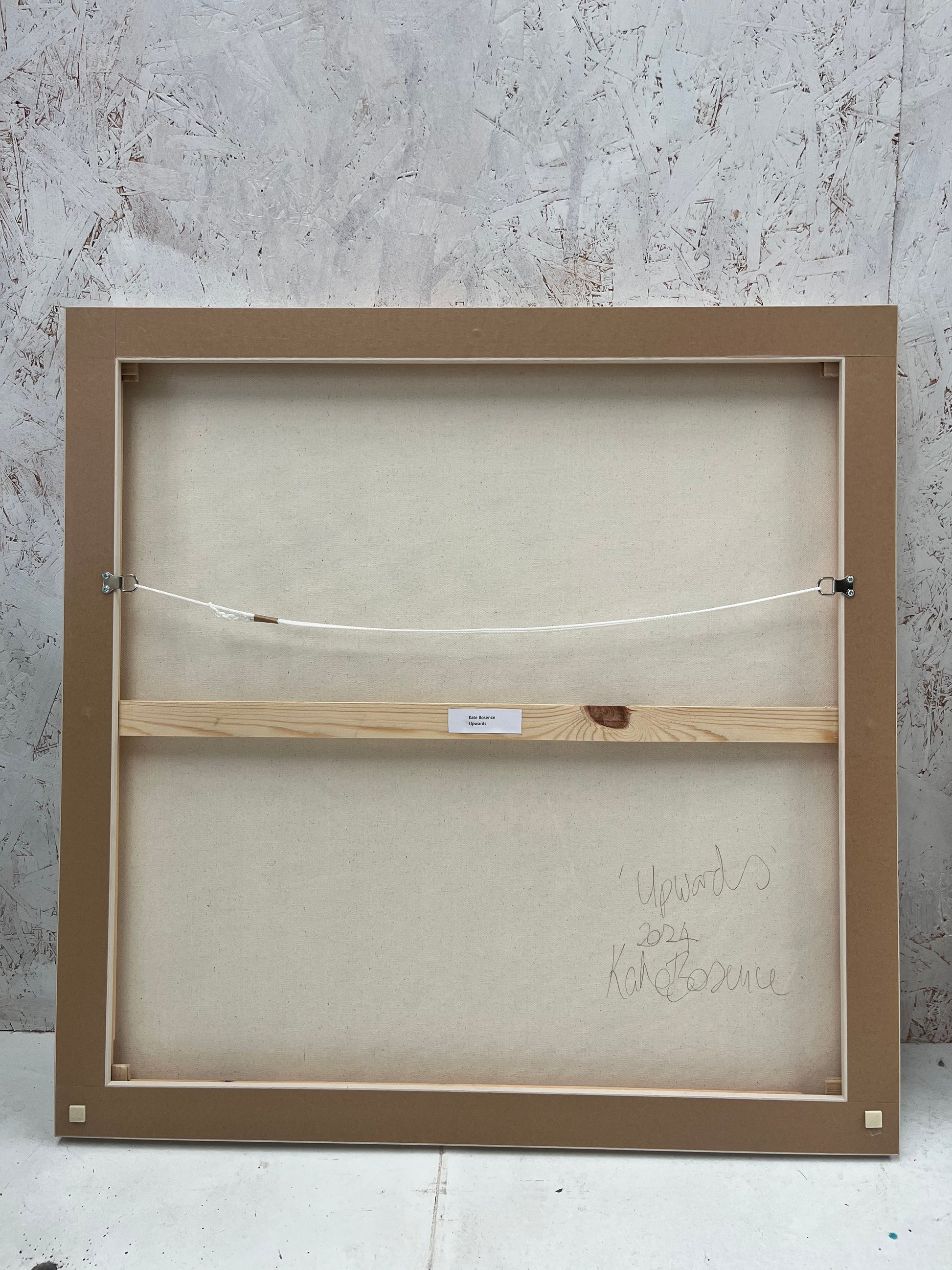 The painting’s calm washes are punctuated by a single energetic line of orange, adding a dynamic contrast to the serene scene. Smoothly executed and balanced, this piece invites you to breathe in the quiet beauty of nature. Framed in a cream wooden tray frame, Upwards brings the essence of the countryside into your living space.
