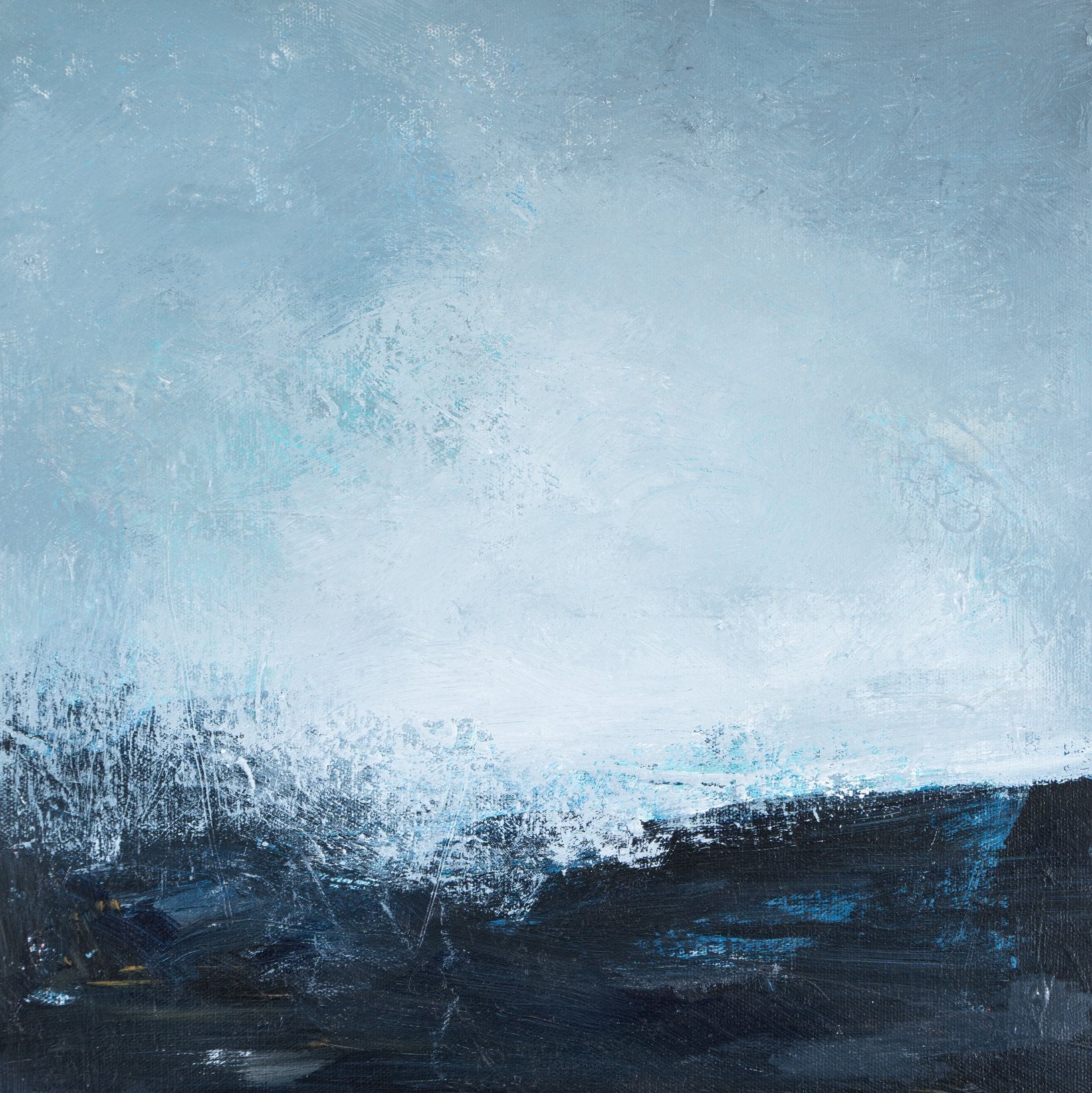 I create my paintings building the paint up in layers to build texture and atmosphere. I like to transfer the energy and feeling of my subject with big gestural marks using a variety of wide brushes and scrapers. A suggestion of land, nature or coastline is achieved through mark making with various tools and organic lines.