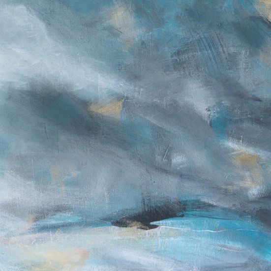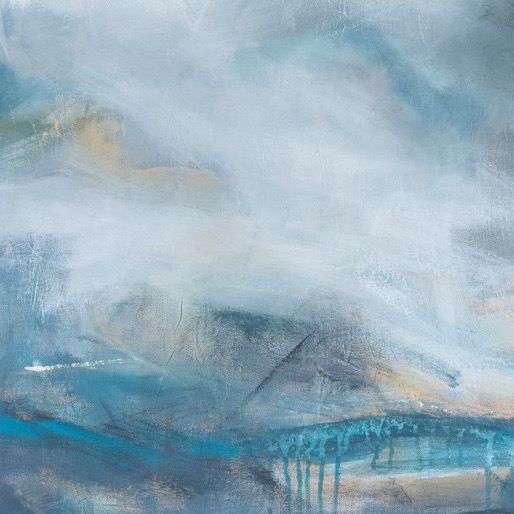 I create my paintings building the paint up in layers to build texture and atmosphere. I like to transfer the energy and feeling of my subject with big gestural marks using a variety of wide brushes and scrapers. A suggestion of land, nature or coastline is achieved through mark making with various tools and organic lines.